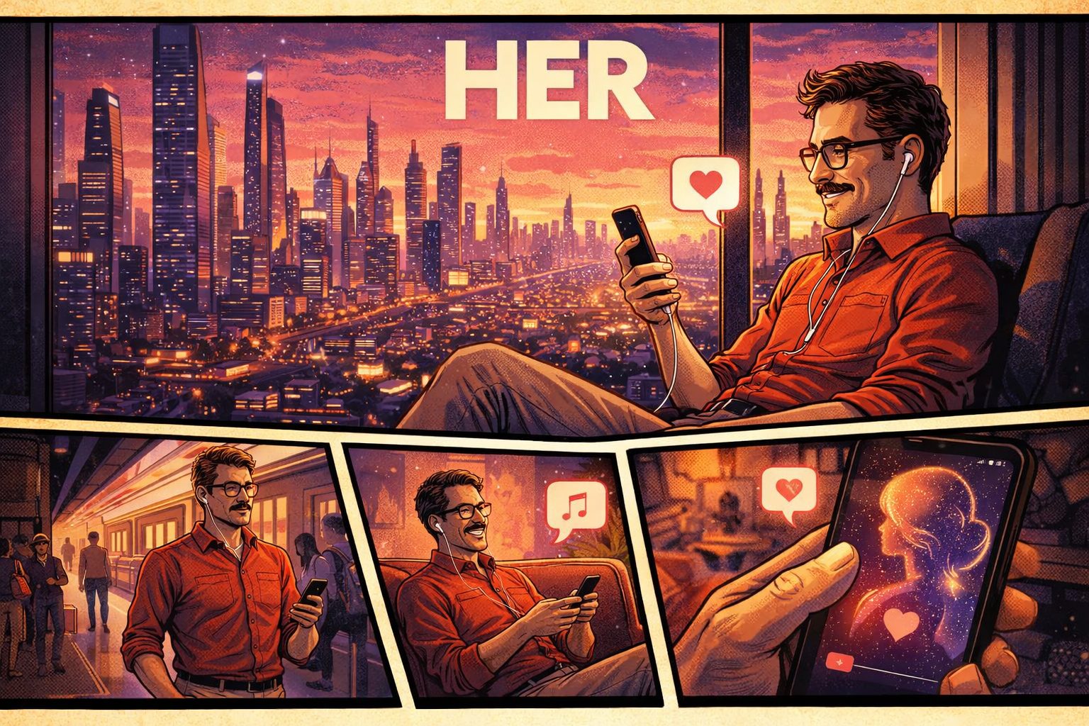Few modern films feel as quiet, intimate, and emotionally unsettling as Her. Directed by Spike Jonze and released in 2013, the film begins with a premise that could easily have become satire or speculative gimmick: a lonely man falls in love with an artificial intelligence. Yet Her avoids both cold futurism and easy irony. Instead, it becomes something unexpectedly tender — a film about loneliness, desire, emotional projection, and the human need to be understood, even when understanding arrives from a voice without a body.